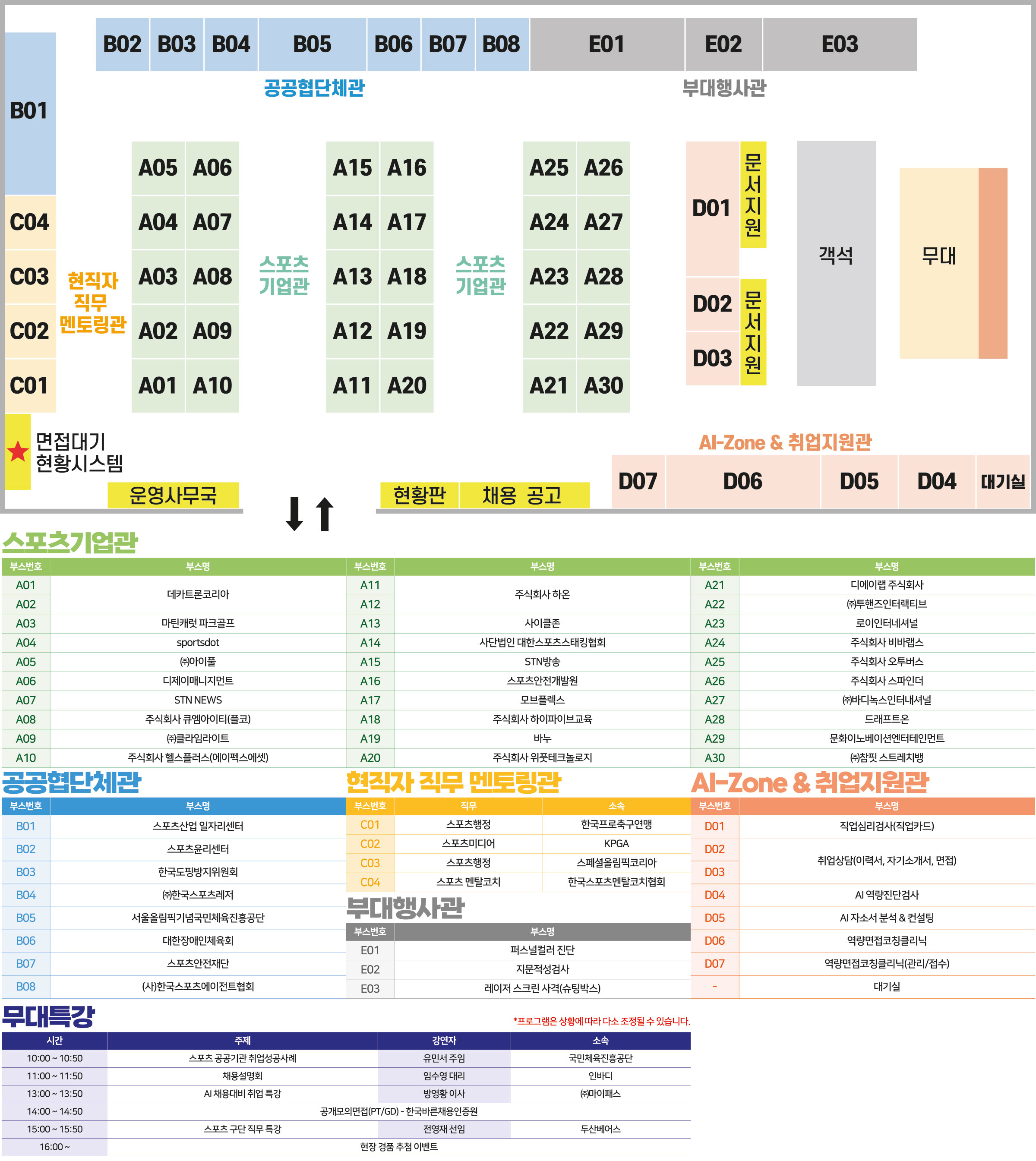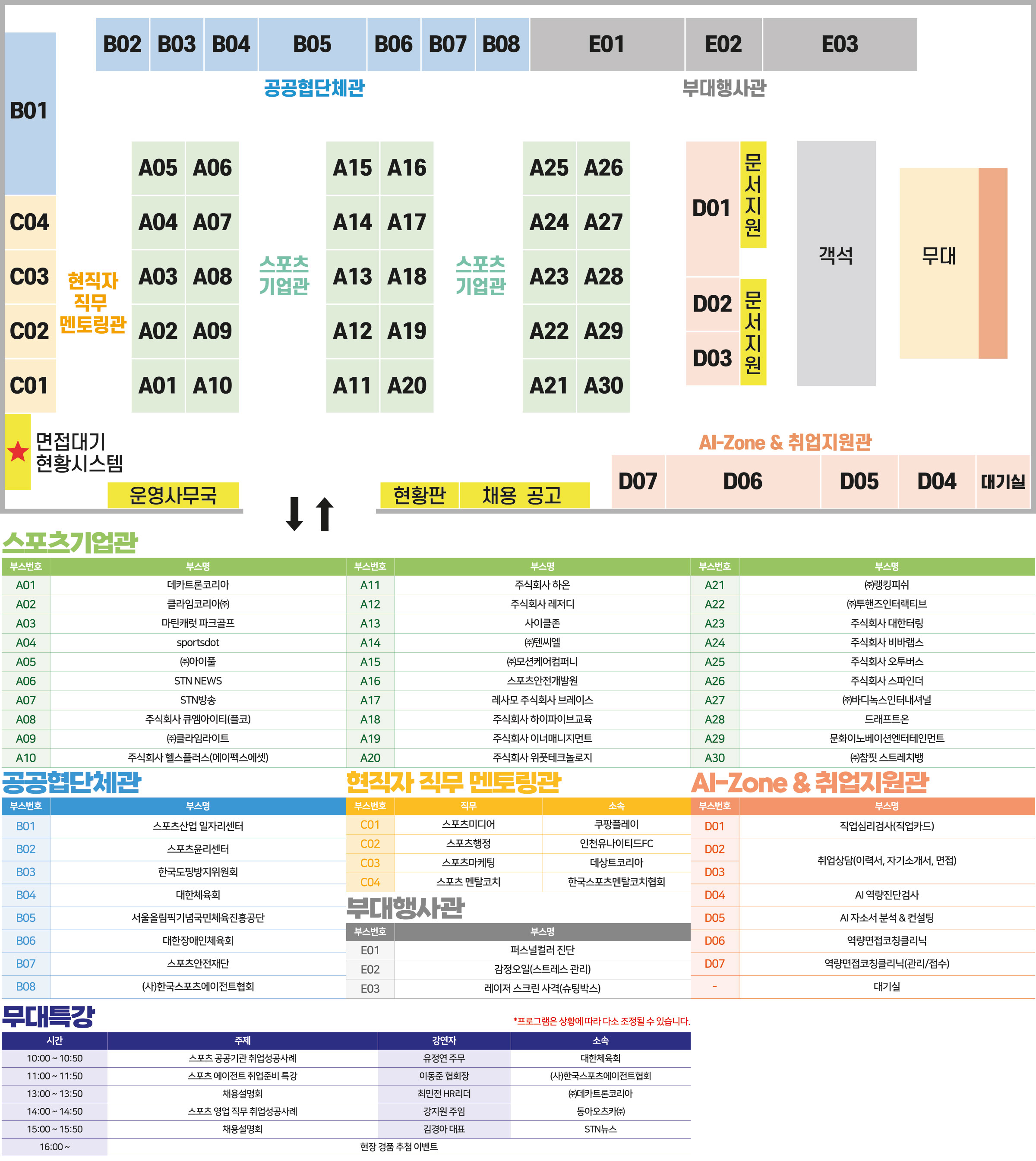 행사장 부스와 주요 시설의 위치를 확인하실 수 있습니다.